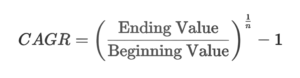 CAGR measures the annual growth of an investment over a specific period, assuming profits are reinvested. It answers the question: “What would my investment’s steady annual growth rate be?”